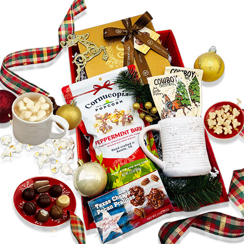 Our Houston-based team designs each basket to order using gourmet items, festive treats, seasonal flavors, and beautiful holiday packaging — all priced thoughtfully so you can give generously without overspending.